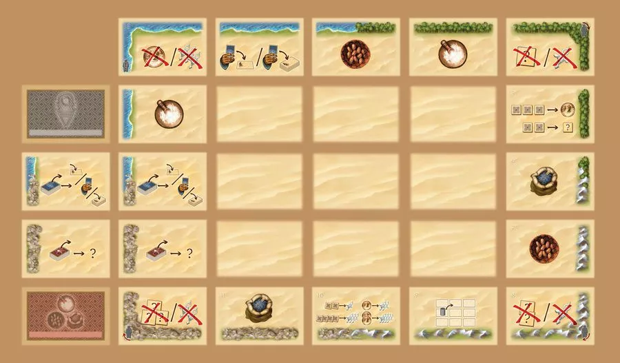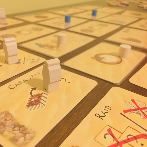 Unlike in other cultures, the desert Tuareg men, known as Targi, cover their faces whereas women of the tribe do not wear veils. They run the household and they have the last word at home in the tents. Different families are divided into tribes, headed by the ‘Imascheren’ (or nobles). As leader of a Tuareg tribe, players trade goods from near (such as dates and salt) and far (like pepper), in order to obtain gold and other benefits, and enlarge their family. In each round their new offerings are made. Cards are a means to an end, in order to obtain the popular tribe cards.