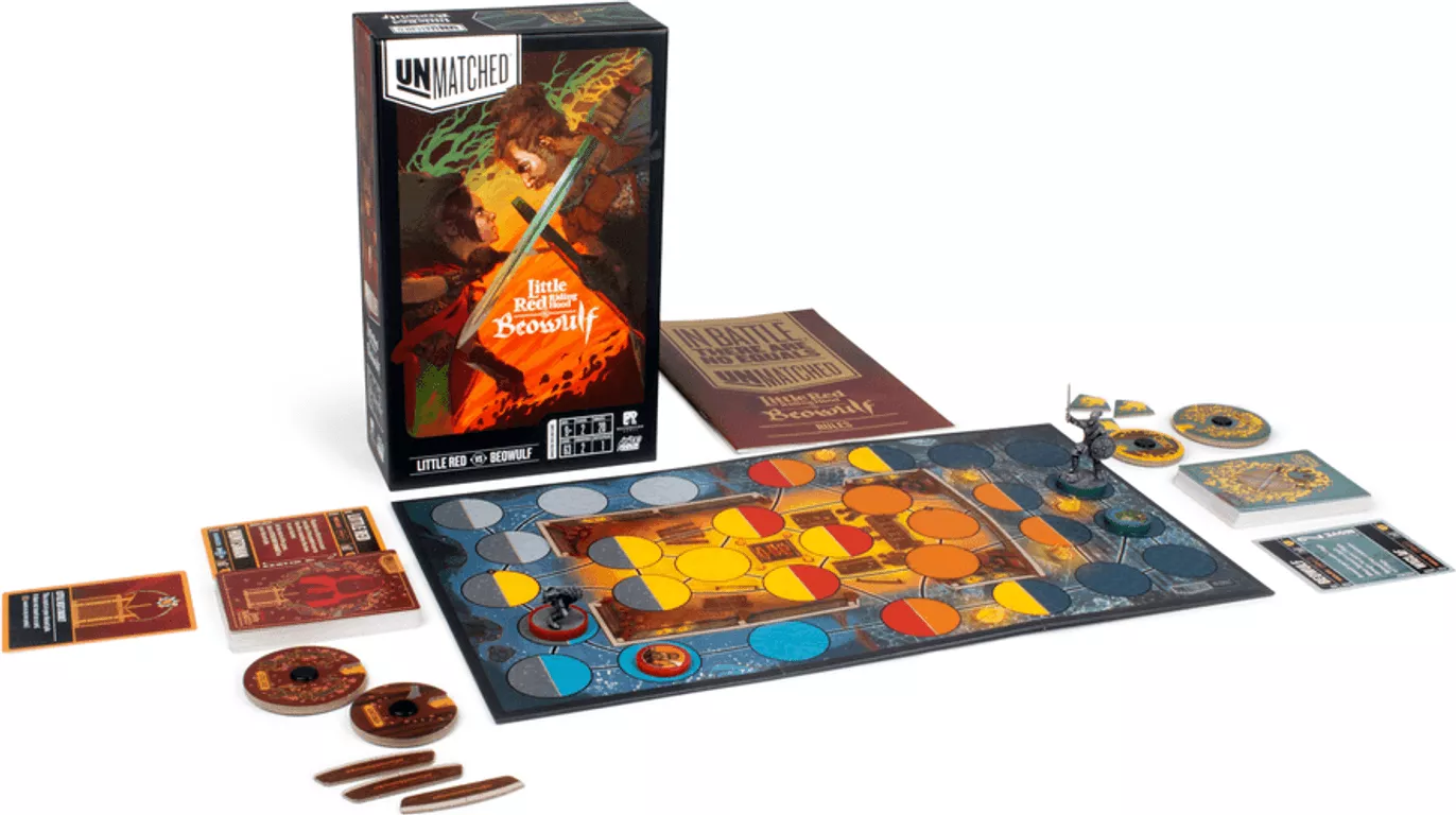In Unmatched strijd je als legendarische held en ga je het duel met elkaar aan. De legendarische helden komen uit films, uit boeken of uit eeuwenoude legendes. Je kunt strijders uit verschillende Unmatched spellen met elkaar combineren. Elke held heeft een set actiekaarten met unieke vaardigheden die horen bij de vechtstijl van die held. Maar vergeet niet dat er aan het einde van het spel maar één winnaar kan zijn!In deze set vind je 2 nieuwe karakters: Roodkapje en Beowulf.Alle sets kunnen met elkaar gecombineerd worden dus eindeloze mogelijkheden en uitdagingen.